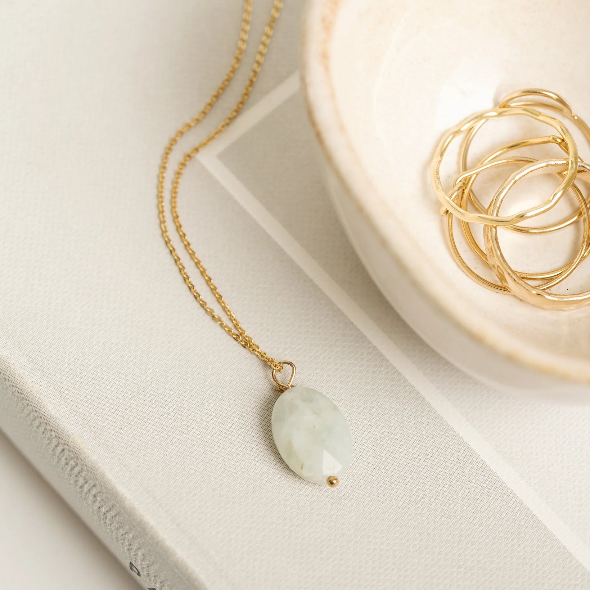 Ce collier est orné d'une magnifique pierre précieuse aigue-marine, connue pour sa couleur bleu-vert brillante et sa clarté délicate.