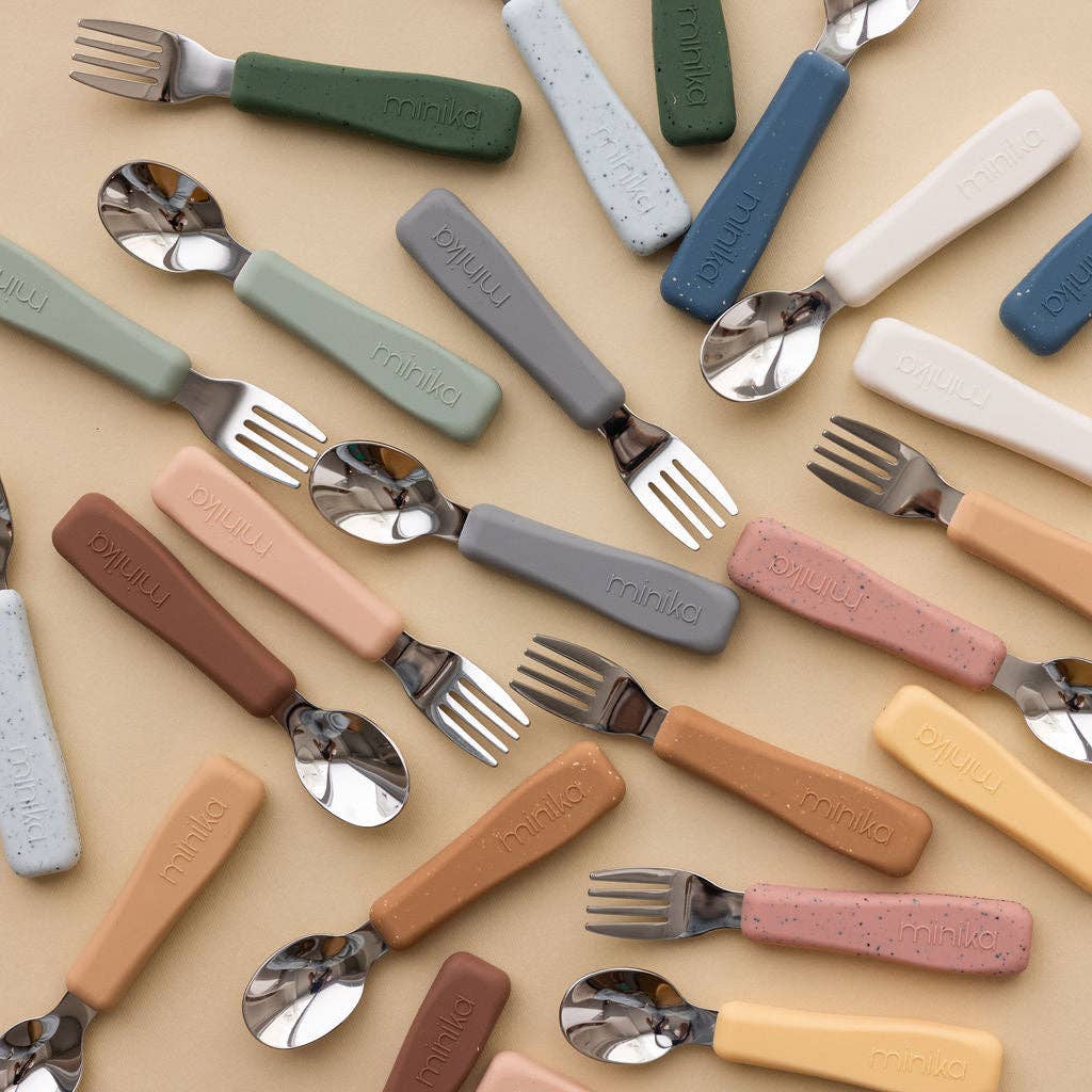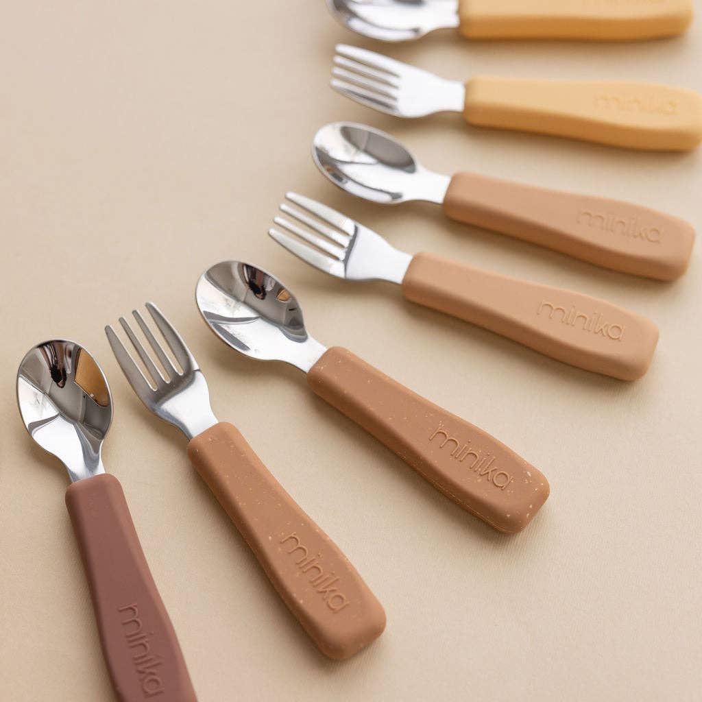 Ensemble de fourchettes et de cuillères. Silicone de qualité alimentaire. Sans BPA, PVC, plomb et phtalates. Facile à laver au lave-vaisselle ou avec du savon et un chiffon humide.
