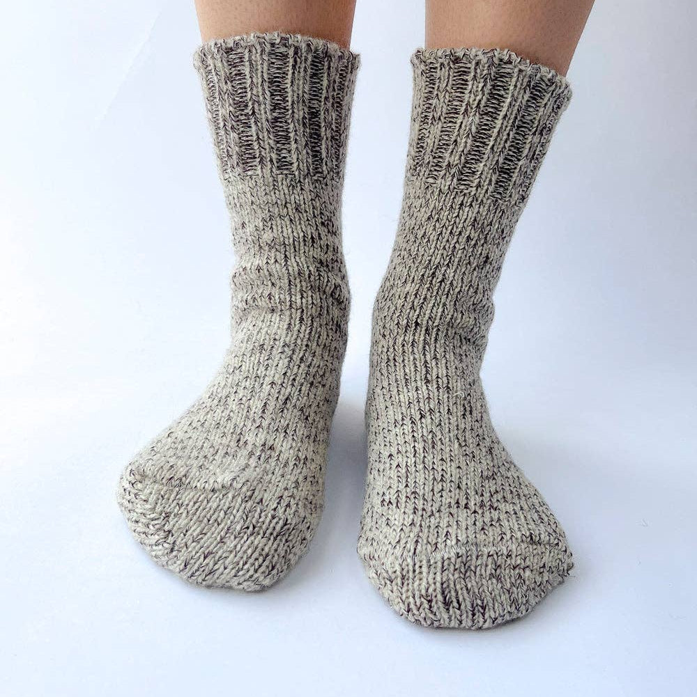 Ces chaussettes épaisses 100 % laine mesurent 10 pouces de hauteur depuis la cheville. Portez-les avec vos bottes ou à la maison ou au chalet.