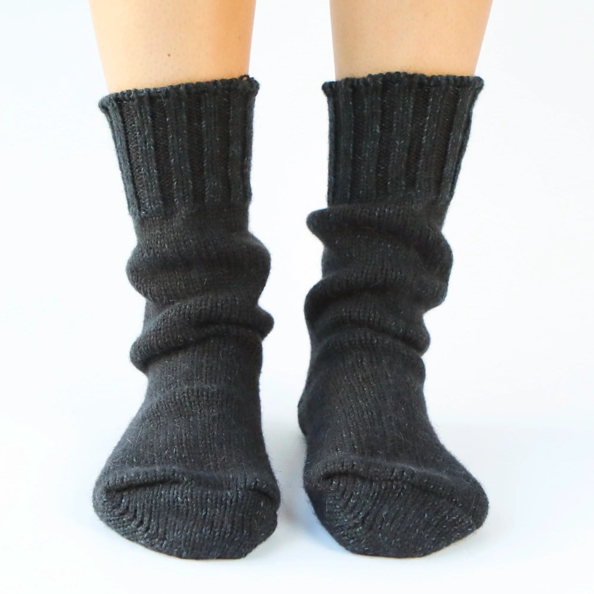 Ces chaussettes épaisses 100 % laine mesurent 10 pouces de hauteur depuis la cheville. Portez-les avec vos bottes ou à la maison ou au chalet.