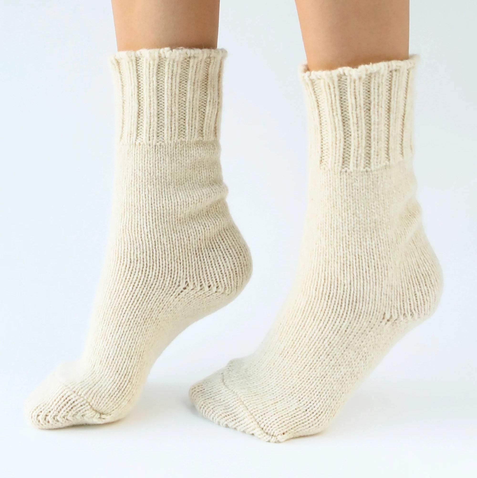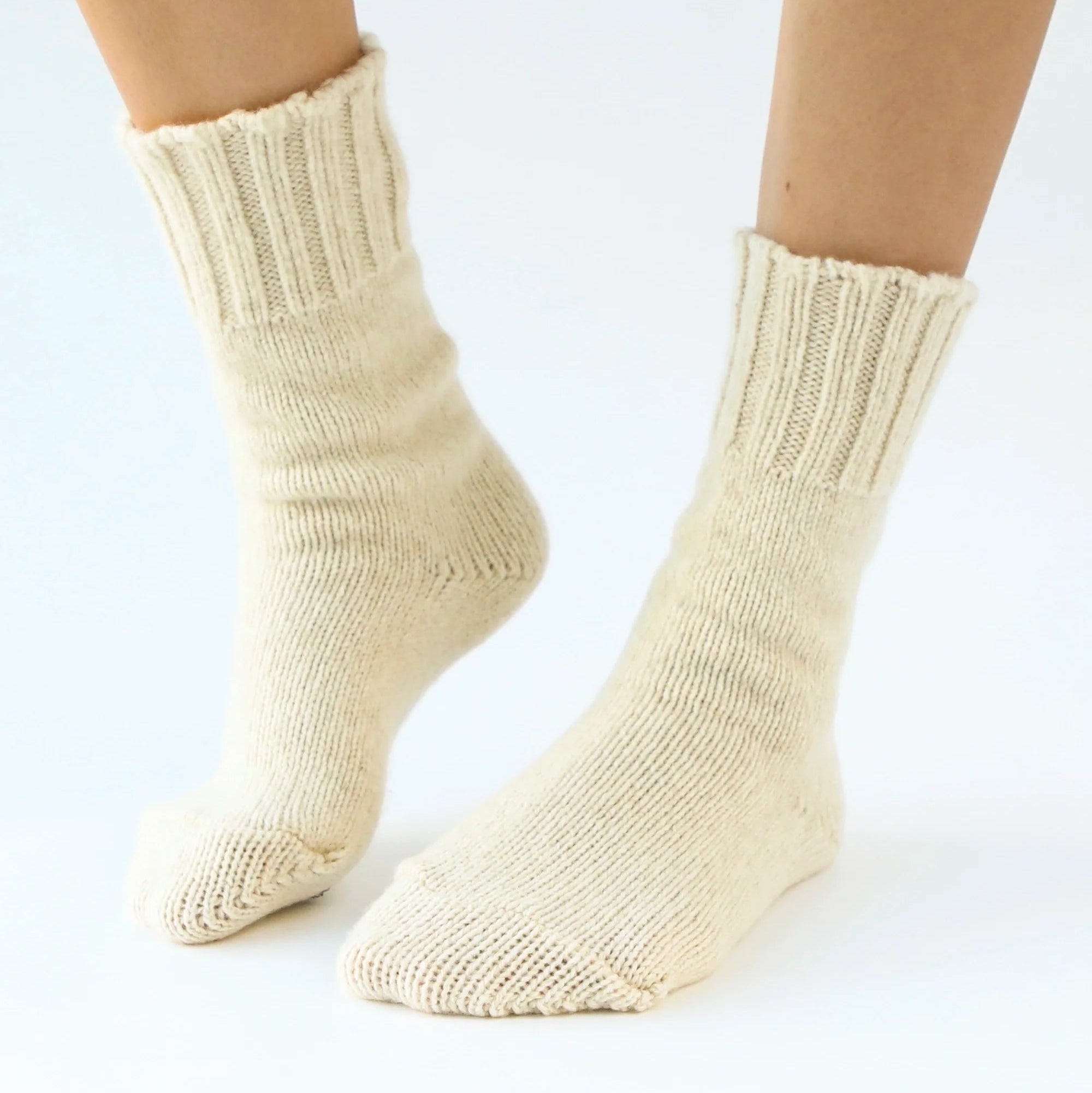 Ces chaussettes épaisses 100 % laine mesurent 10 pouces de hauteur depuis la cheville. Portez-les avec vos bottes ou à la maison ou au chalet.