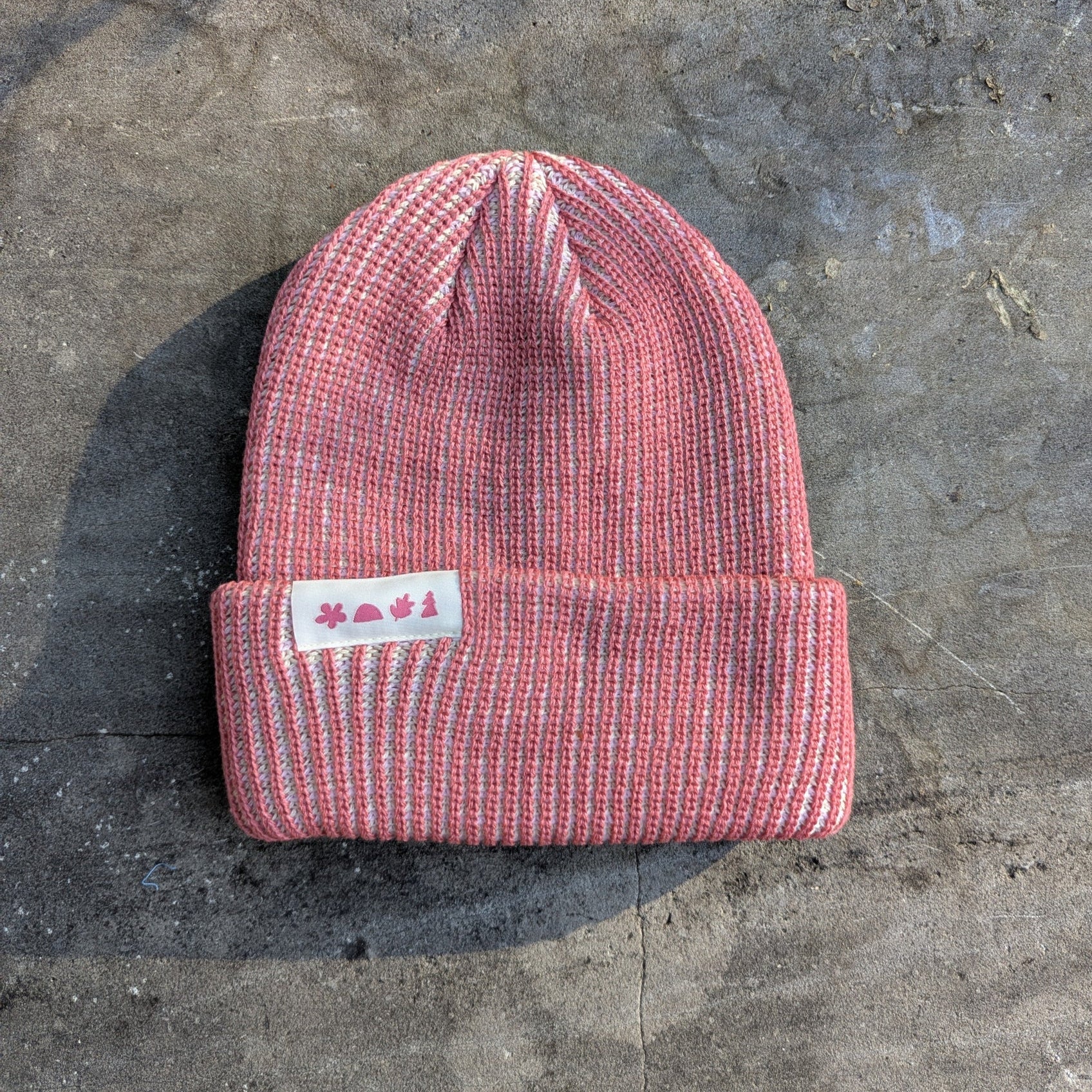 Entièrement fabriquée au Canada, cette tuque combine des fils rose et naturel et blanc cassé pour un look à la fois doux et audacieux.