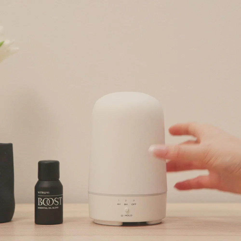 How to use: Fill the water tank to the maximum line, add 20 to 25 drops of the essential oil of your choice, replace the lid and choose the setting of your choice.