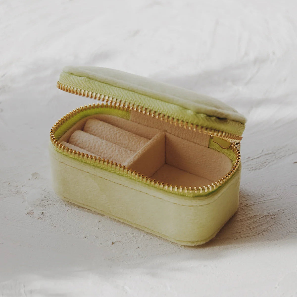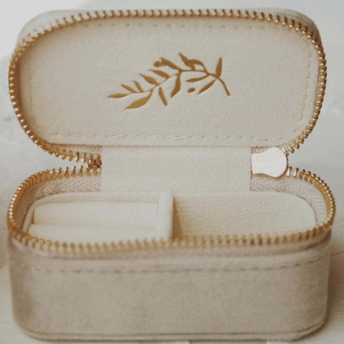 Velvet travel jewelry box, perfect for storing your rings, earrings, necklaces and small treasures! It includes a ring tray and additional space for your other beautiful things.