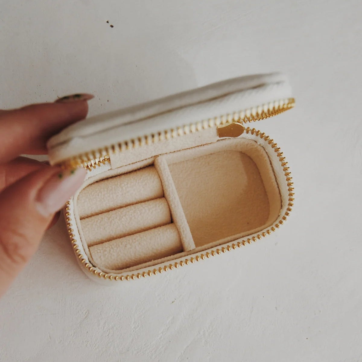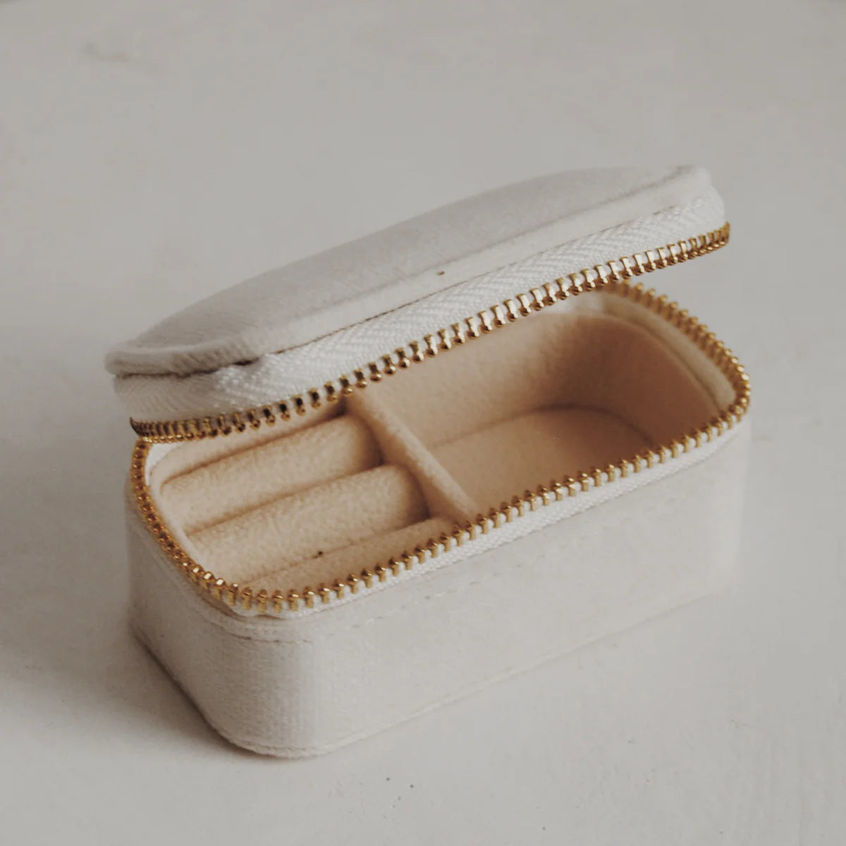 Velvet travel jewelry box, perfect for storing your rings, earrings, necklaces and small treasures! It includes a ring tray and additional space for your other beautiful things.