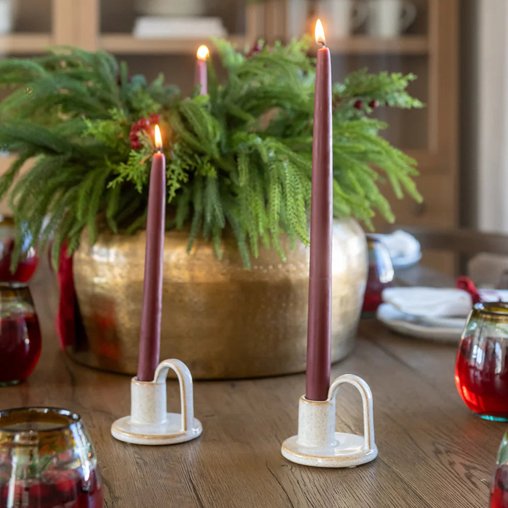 Elevate the atmosphere of your space with this timeless candlestick. Its tapered stoneware stand, measuring 3 inches tall and 3-1/2 inches in diameter, combines understated elegance. The natural texture of the stoneware, both soft to the touch and subtly rough to the eye, gives this small accessory a warm and authentic presence. A functional handle, thoughtfully integrated, makes it easy to move the candlestick while adding a touch of refinement. Perfect for showcasing a candle, it diffuses a soft, soothing light, ideal for creating a cozy and intimate ambiance in your home. Every detail of this candlestick embodies the harmony between modern design and traditional craftsmanship.