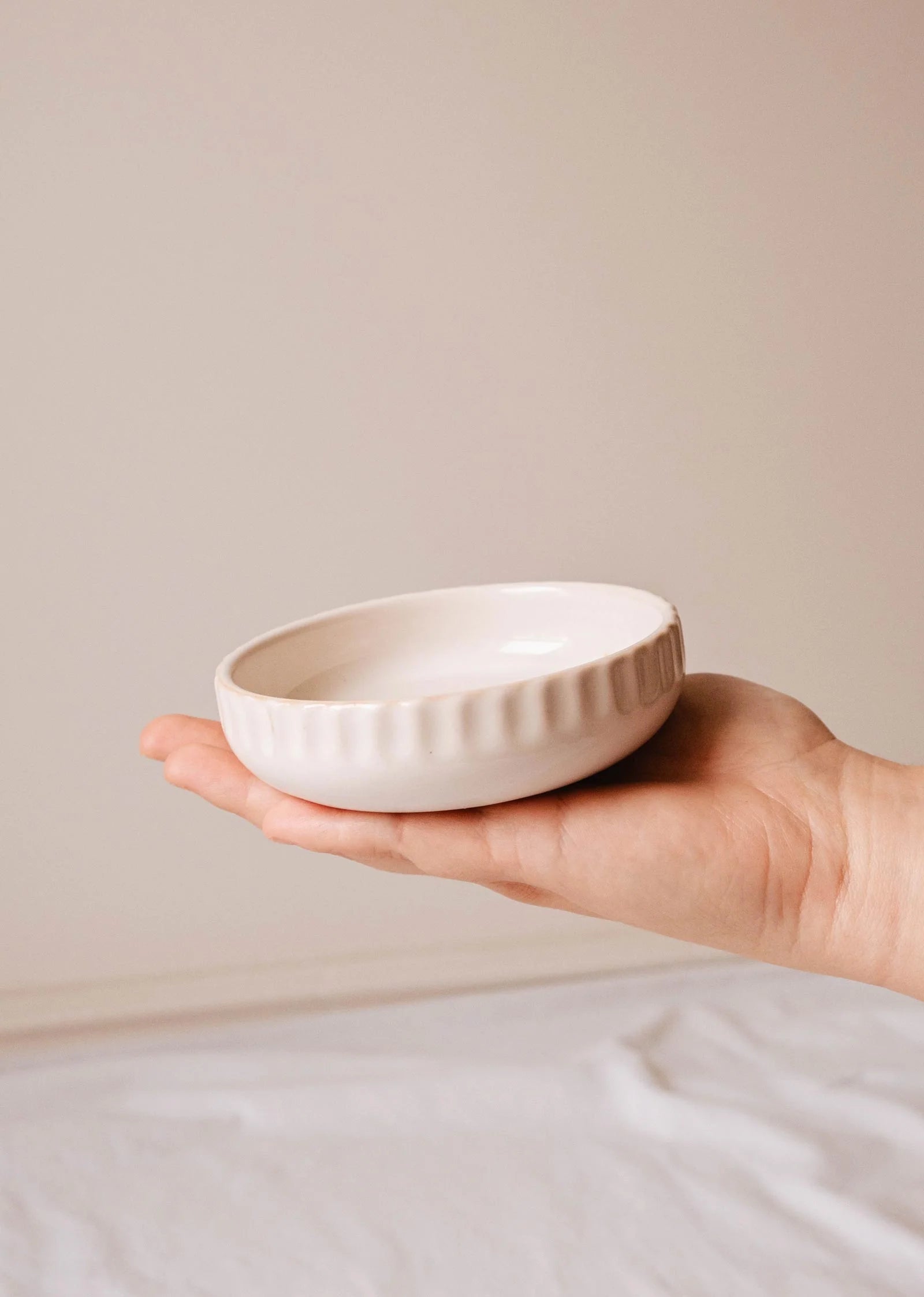 Add a touch of charm and elegance to your space with this beautifully handcrafted ceramic plate. It's the perfect companion to our Mimi & August candle refills, transforming every moment into a cozy experience. The minimalist, textured design not only looks great with your candles, but also doubles as a tray for your favorite bar soaps, jewelry, or other small treasures.