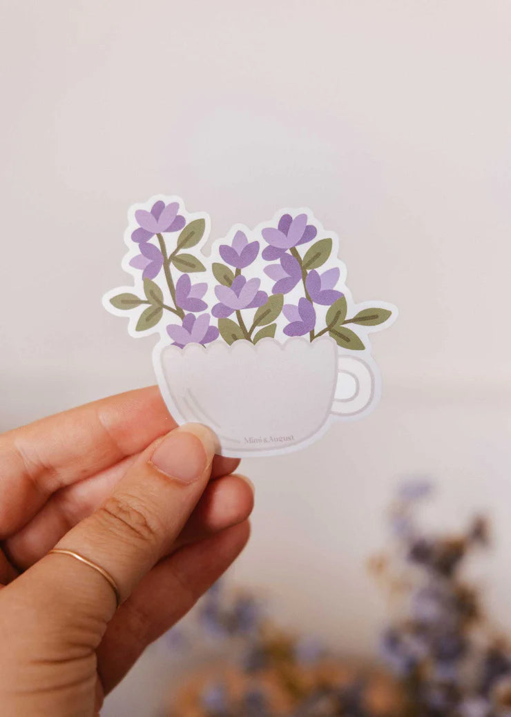 Cet autocollant en vinyle représente une jolie tasse blanche débordante de fleurs violettes. Idéal pour décorer ton ordinateur portable, ton agenda, ta bouteille d’eau ou tout autre support, Tasse Fleurs apporte une touche florale paisible à ton quotidien. Résistant à l’eau, aux rayures et rempli de tendresse.