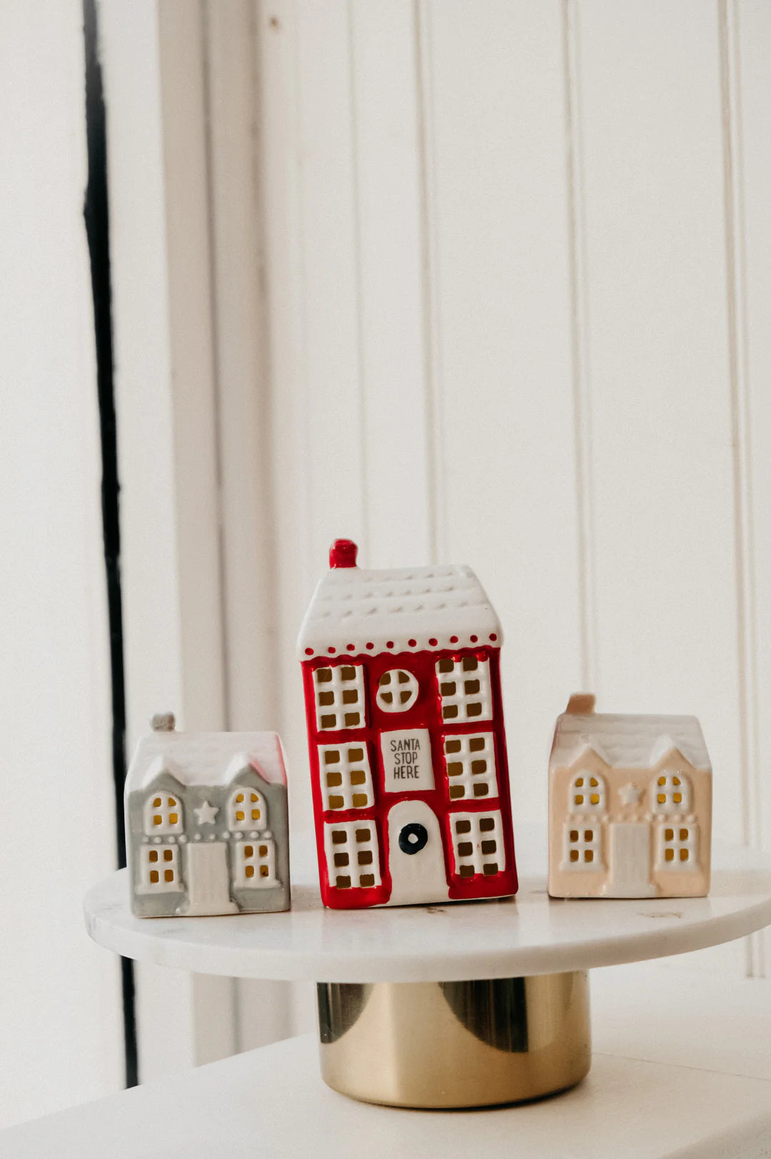 Show off your charm this Christmas with this trio of ceramic houses that light up from within. Display them together to create a pretty village scene or place them throughout your home for a festive atmosphere.