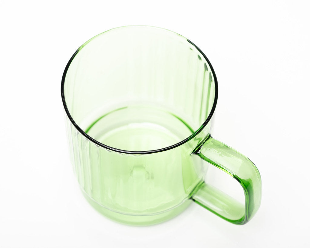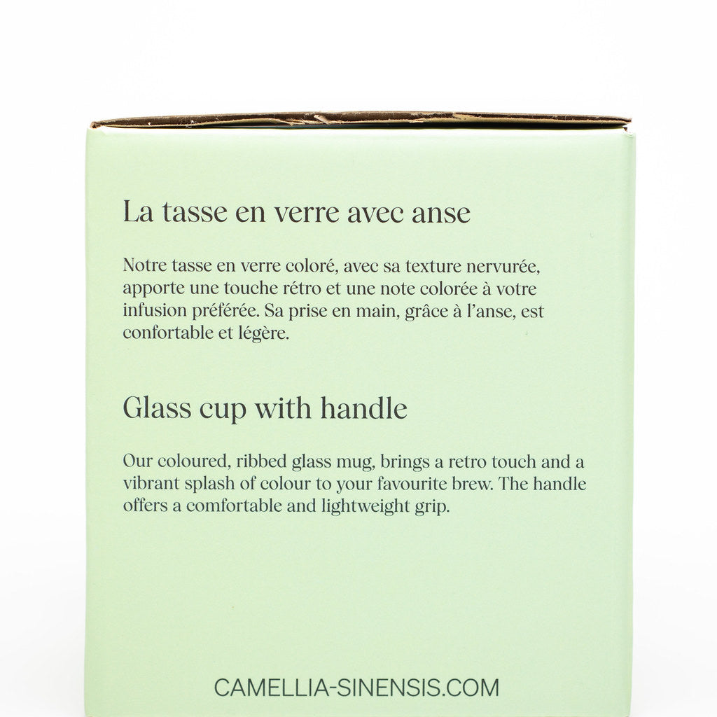 Notre tasse en verre coloré, avec sa texture nervurée, apporte une touche rétro et un éclat de couleur à votre infusion préférée. Sa prise en main, grâce à l’anse, est confortable et légère.