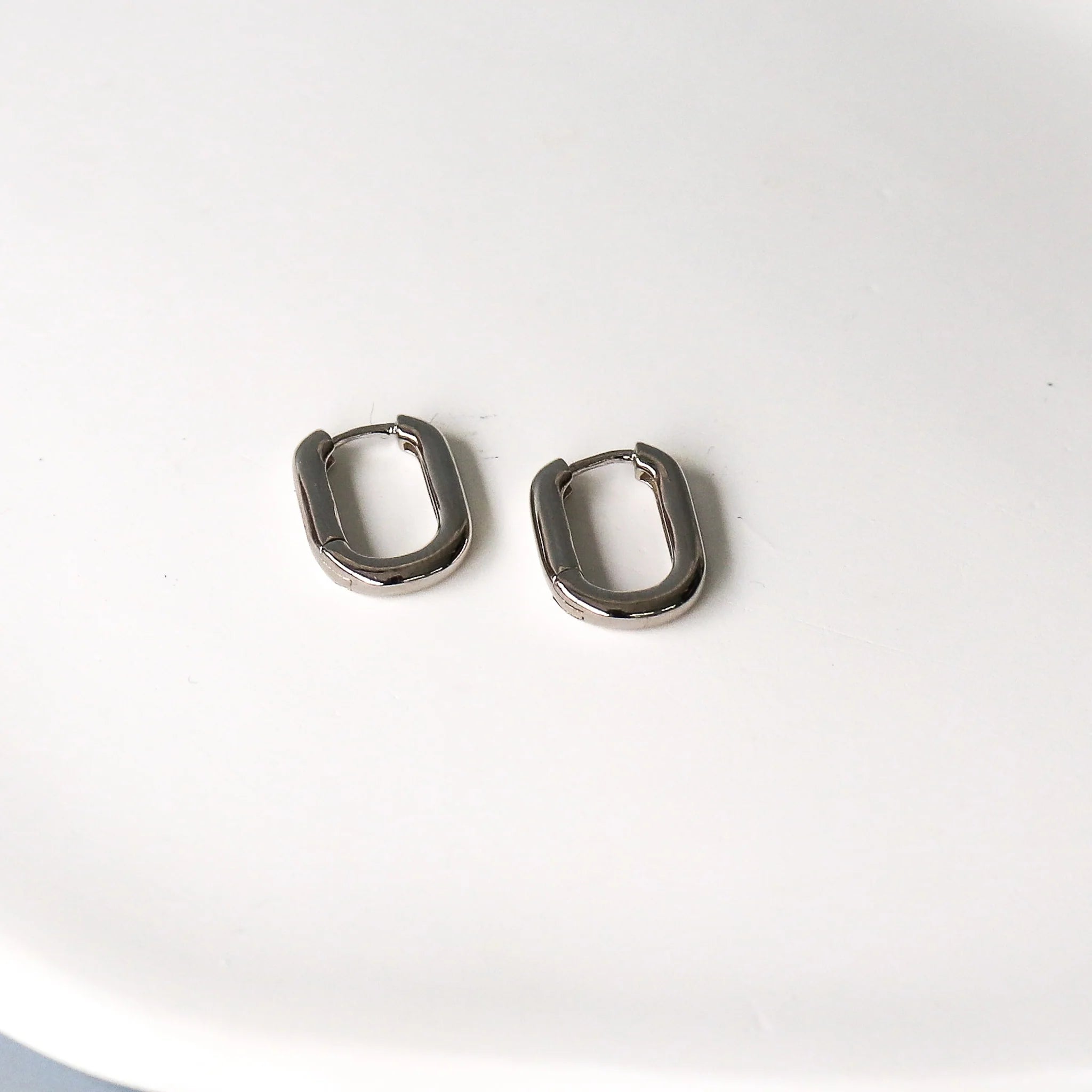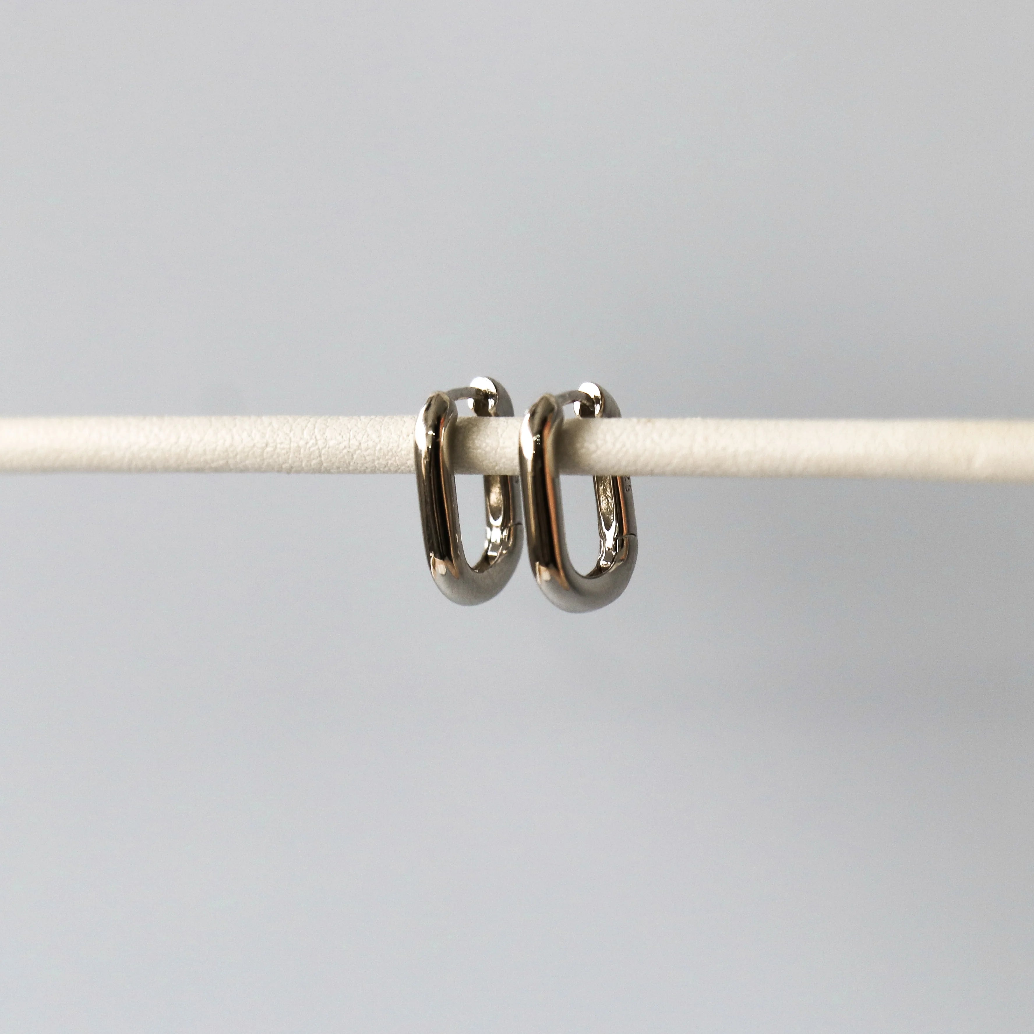 Boucles d'oreilles de type anneaux rectangulaires aux coins arrondis. Optez pour une forme différente d'anneaux dans votre boîte à bijoux et optez pour ces boucles d'oreilles délicates mais originales.