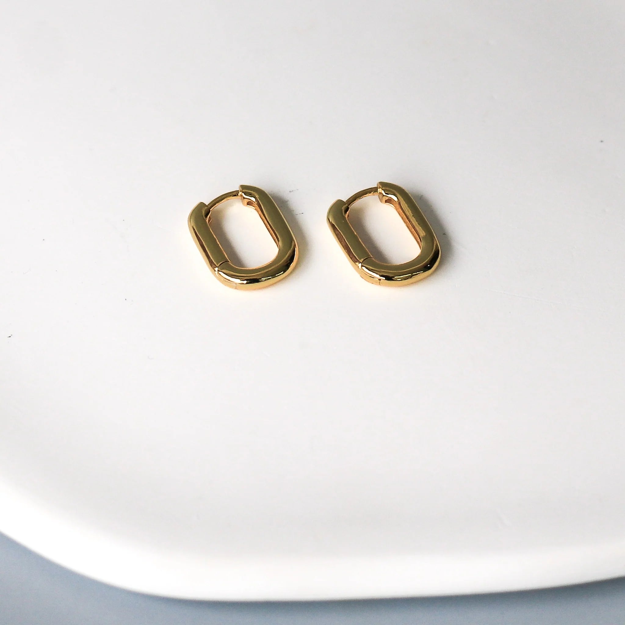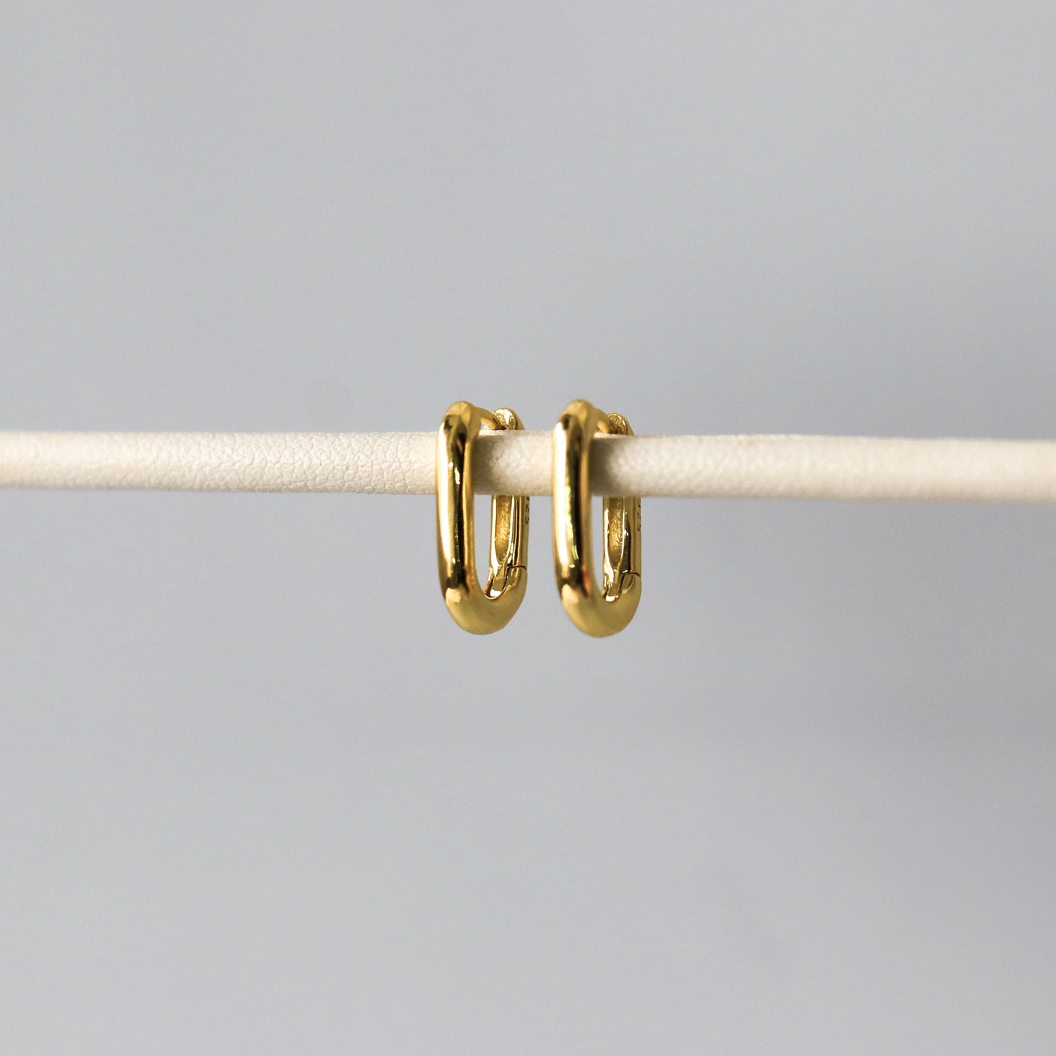 Boucles d'oreilles de type anneaux rectangulaires aux coins arrondis. Optez pour une forme différente d'anneaux dans votre boîte à bijoux et optez pour ces boucles d'oreilles délicates mais originales.