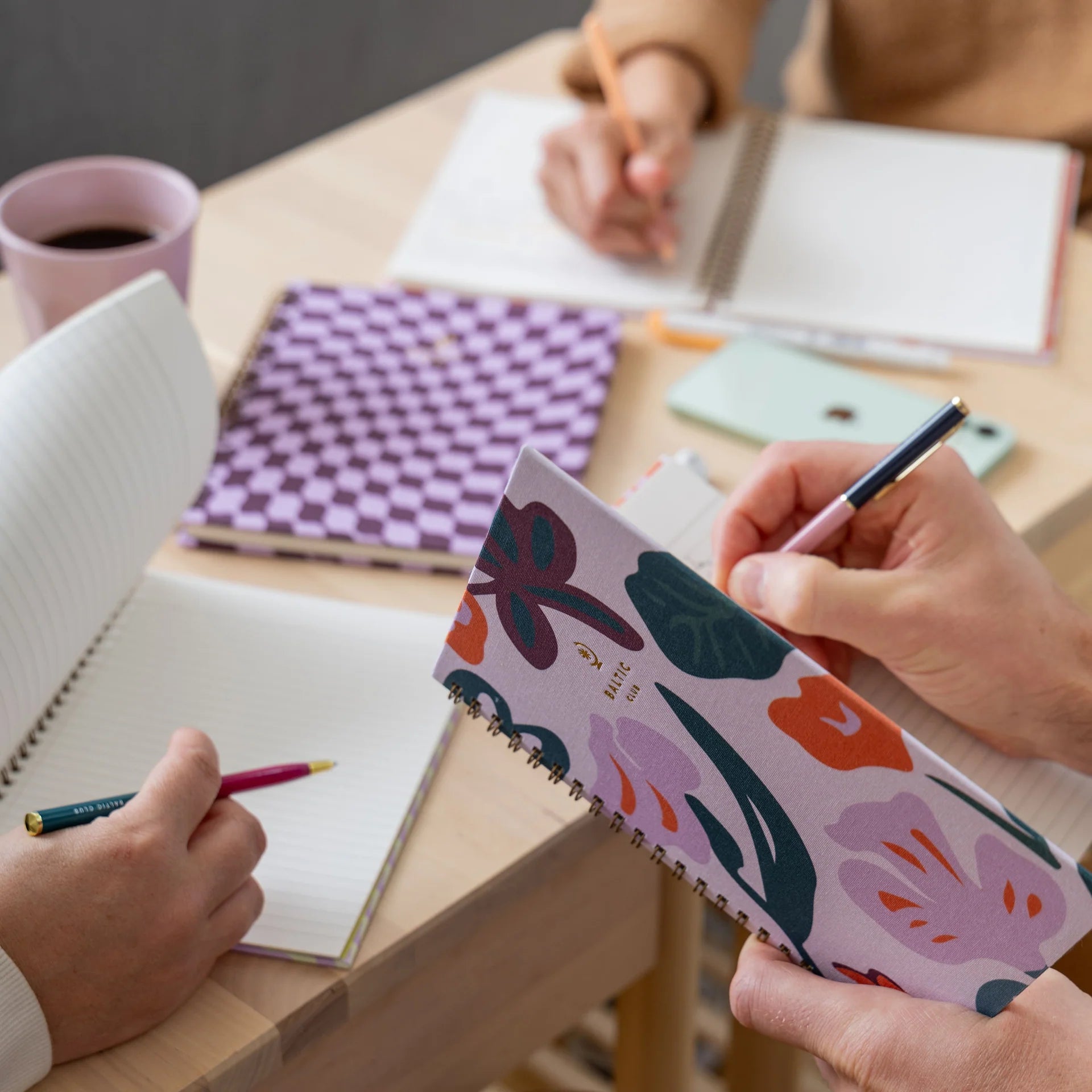 Un élégant cahier avec une couverture recouverte d'une toile de tissu sur carton et composé de 110 pages de papier naturel 60 lbs ultra-lisse. La couverture arrière est un carton kraft rigide.