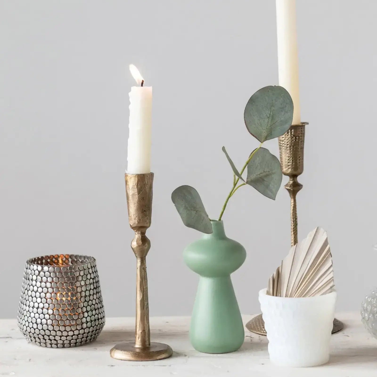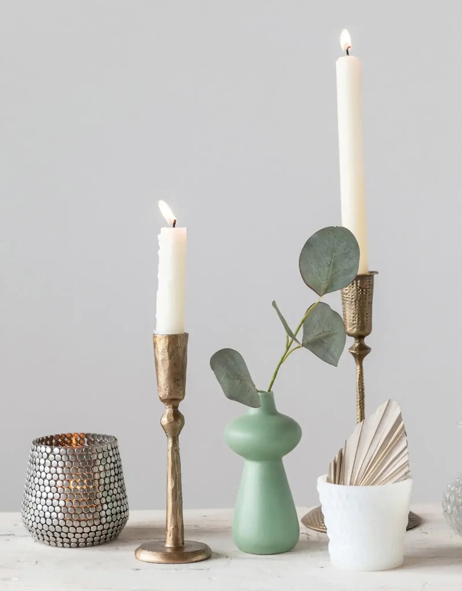 Élevez l’espace avec ce support conique en métal en laiton antique. Il est fait de métal durable avec une texture forgée à la main qui ajoute du caractère et de la dimension à la pièce. Sa finition en laiton antique lui confère un aspect riche et élégant. Il peut contenir n’importe quelle bougie conique en cire ou LED standard, créant une ambiance chaleureuse et romantique dans la maison. Placez-le dans n'importe quelle pièce, comme le salon, la salle à manger ou la chambre, et créez un superbe point focal. Mélangez-le également avec d'autres bougeoirs de différentes formes et tailles pour un look plus éclectique et dynamique. Ce porte-cône est une pièce polyvalente qui peut s'adapter à n'importe quel style de décoration d'intérieur, du traditionnel et élégant à l'industriel et chic. Il est facile à nettoyer et à entretenir ; essuyez-le simplement avec un chiffon sec. Ce porte-cône en métal en laiton antique est un incontournable pour la maison.