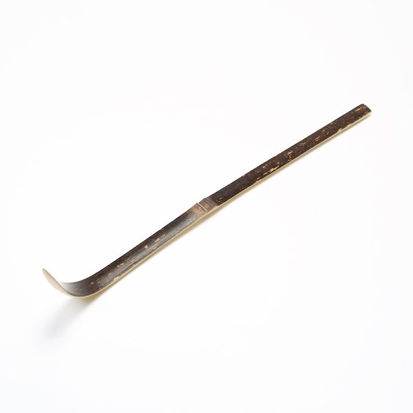 Composé d'une seule pièce de bambou, le chashaku permet le dosage de la précieuse poudre verte lors de la cérémonie japonaise du thé, le chanoyu.