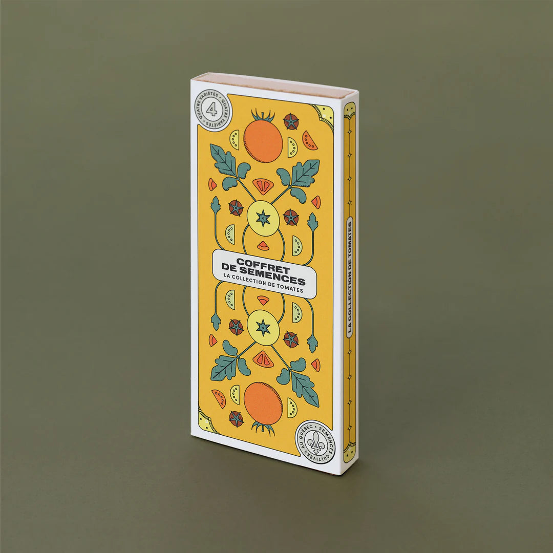 Les tomates sont des incontournables des jardins. Les petits et les grands adorent cueillir les fruits chauffés par les rayons du soleil et les manger sur place. Ce coffret contient les semences de quatre variétés de tomates que nous avons sélectionnées pour un potager généreux et diversifié en couleurs et en goûts.