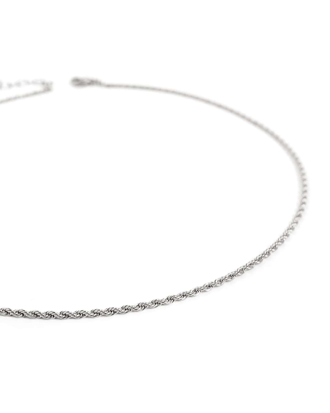 La corde à lier les pensées n'est pas encore tressée. Libre à toi de superposer la chaîne argentée Vena de wellDunn. Découvre un collier argent minimaliste présentant une chaîne torsadée en acier inoxydable. À la fois légère et solide, cette chaîne offre une texture riche et brille de tous ses éclats.
