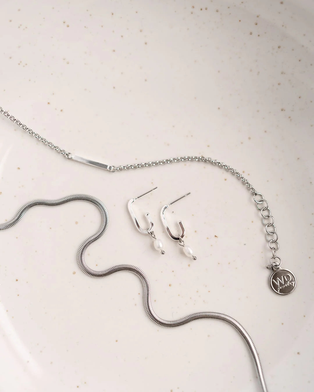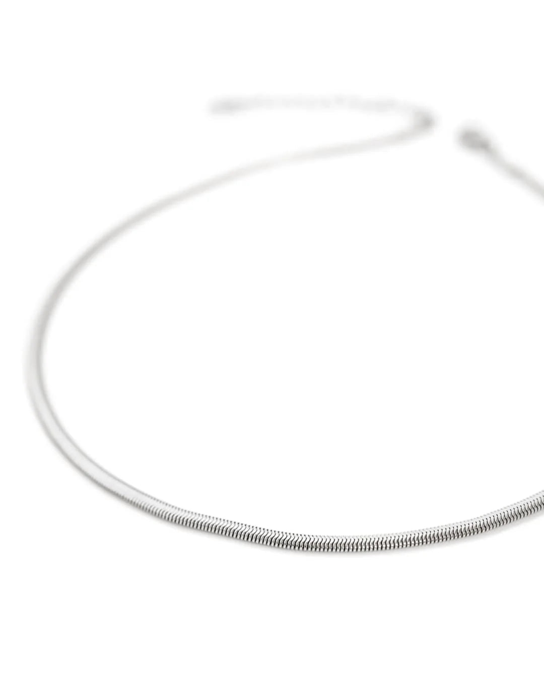 Serpent qui danse comme une étoffe vacillante, cette chaîne fera scintiller ta peau. Snake est un collier or à mailles serrées en acier inoxydable. Parfaitement superposable à tous nos colliers, cette chaîne se porte ras-le-cou pour un look épuré.